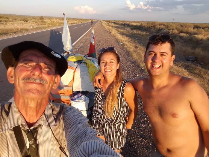 Echegaray Davies es oriundo de Trelew, tiene esposa, tres hijos y seis nietos. Sostiene que la “familia simplemente estuvo de acuerdo y lo apoyaron en todo”. Y quienes son importantes en esta aventura es la gente. Muchos lo siguen en Facebook, WhatsApp, Instagram, YouTube. “Y a quienes encuentro por la ruta, siempre me van acompañando”, detalló.
