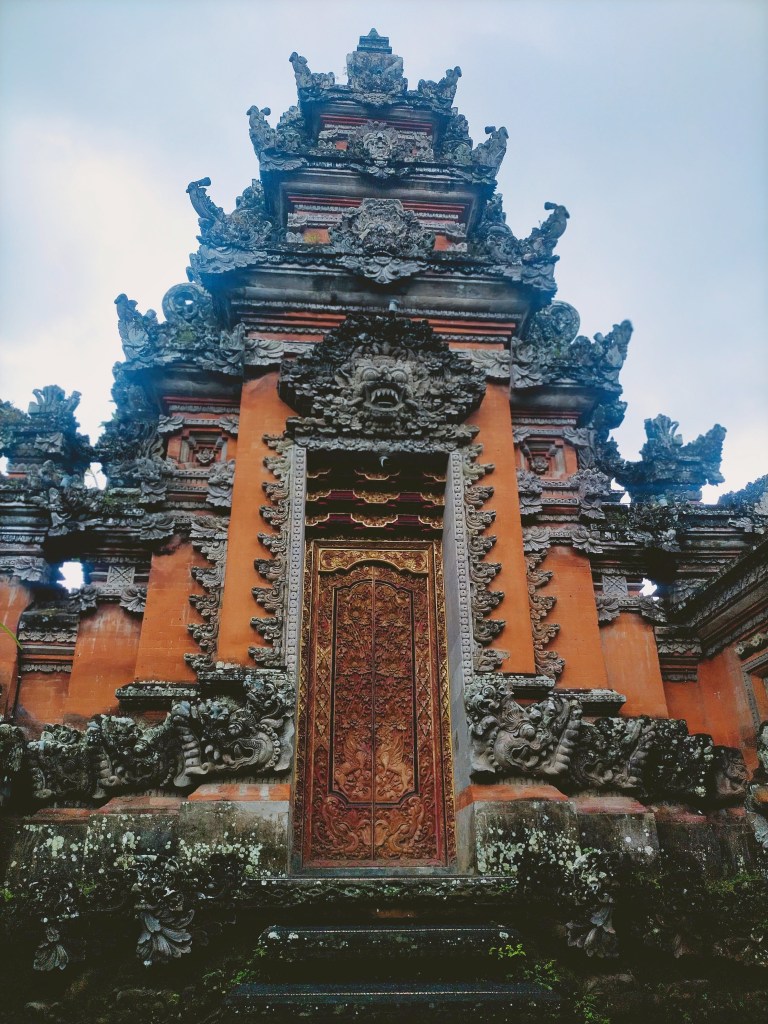 Ubud está en el centro de la isla de Bali y desde que uno va llegando, entre motos, autos, gente, olores, humo y ruidos, el ambiente es muy diferente al de una playa. De a poquito el paisaje se va convirtiendo en tropical, empezás a sentir la humedad. Las plantas, árboles empiezan a ser distintos. La ruta se va transformando en curvas con subidas y bajadas. De manera lenta, por un tráfico bastante concurrido, vas llegando al centro de la ciudad y también es diverso. Más rústico, construcciones de ladrillo, frentes de casas que parecen ser la entrada a un templo. Porque si de templos hablamos, aquí los vas a ver por todos lados.